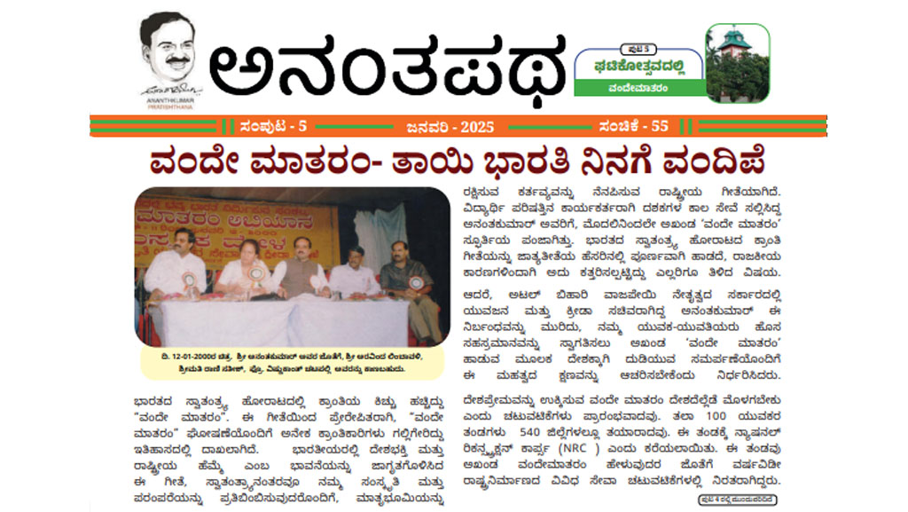 Started in memory of our beloved leader Shri AnanthKumar, the newsletter carries stories of Shri AnanthKumar’s life, his ideas & beliefs and also the activities of AnanthKumar Pratishthana.